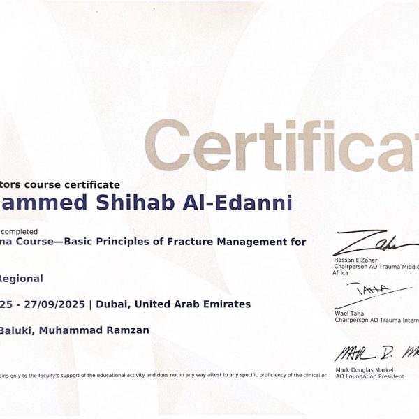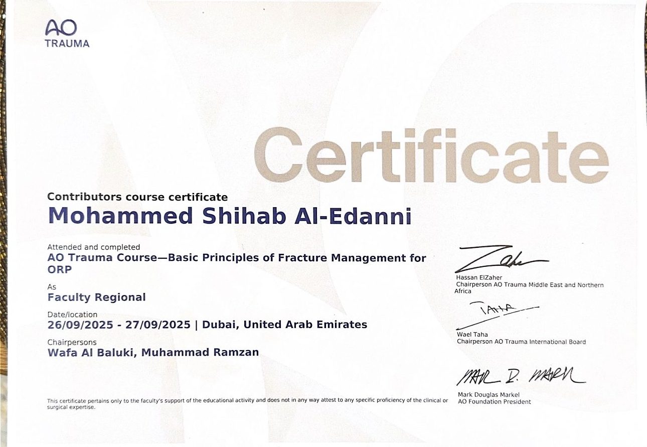 حيث قدم الدكتور العيداني تدريباً متخصصاً داخل صالات العمليات، وركز على كيفية التعامل مع حالات الكسور المتنوعة.