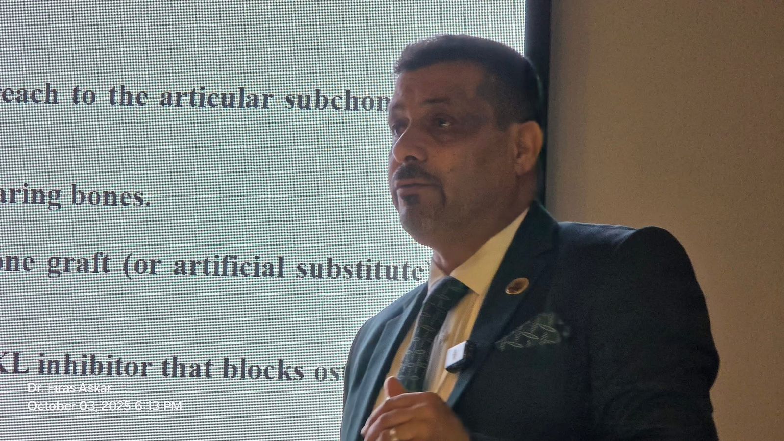 خلال المؤتمر، قدّم الدكتور العيداني محاضرة علمية تناول فيها أورام العظام وطرق علاجها الحديثة. مؤكدًا على أهمية التشخيص المبكر ودقته في تحسين نسب الشفاء.